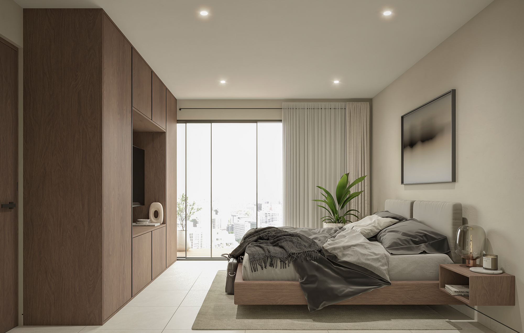 Un refugio privado diseñado para el descanso. La habitación principal ofrece amplitud y tranquilidad, con acceso a un balcón que aporta luz natural y una agradable sensación de apertura, creando un ambiente ideal para desconectarse y recargar energía.