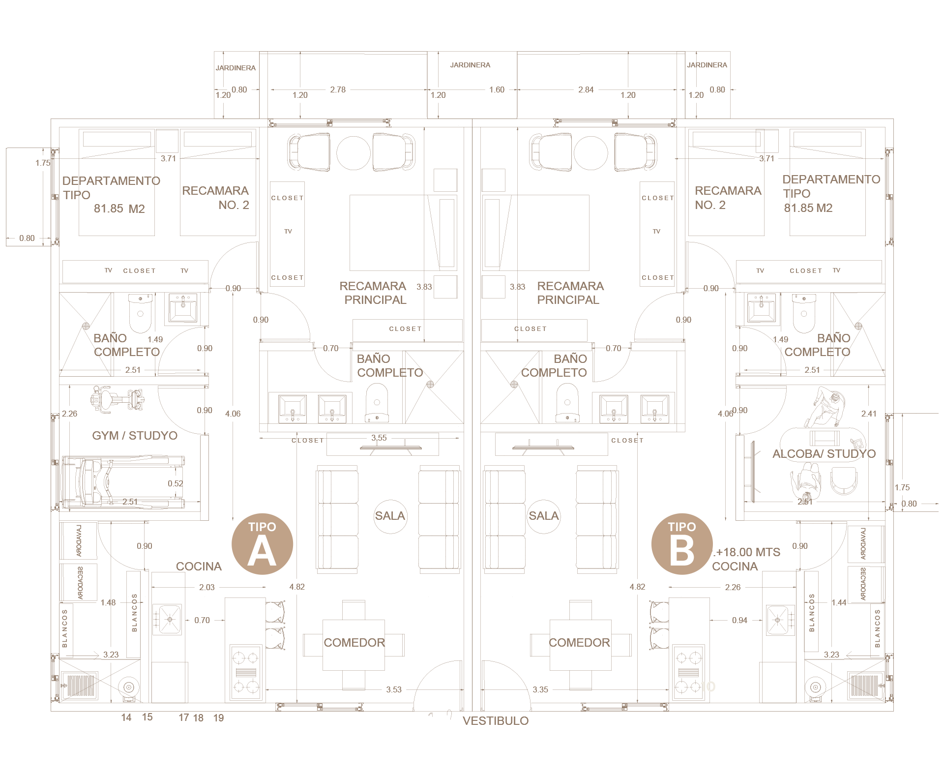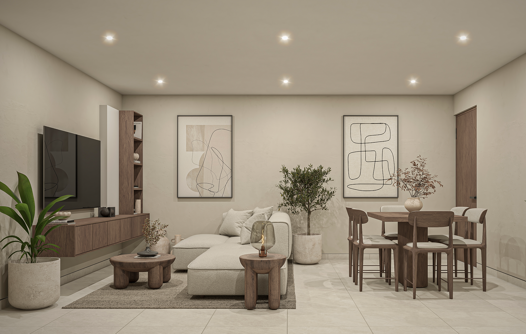 Cada departamento aprovecha al máximo sus 82 m² con una distribución inteligente que equilibra amplitud, funcionalidad y confort. Espacios bien pensados que se sienten más grandes, adaptados al estilo de vida contemporáneo y listos para habitarse.